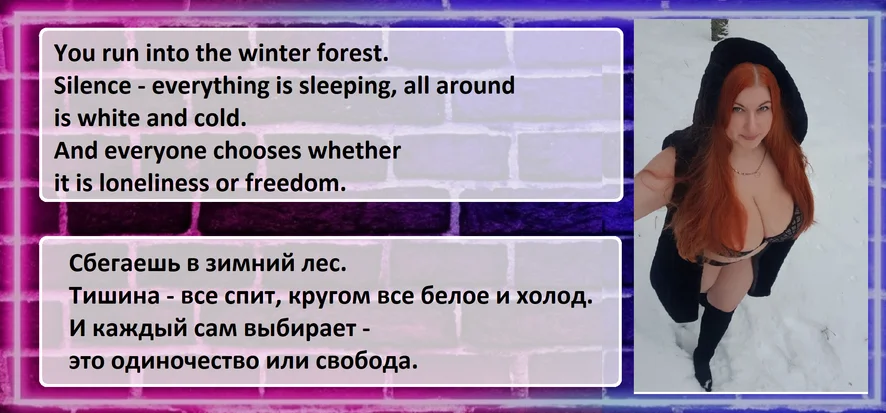 A woman always feels when she is needed, important and desired ... When sex is not good for 5 minutes under the covers. To a man who wants her brutally sincerely, who can take her without hanging snot on her fist, she will always pay back in the same coin ...